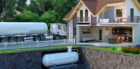Этот вид топлива также является частым выбором в связи с независимостью от газовой магистрали и невысокой стоимостью. Баллоны газа размещаются под землей, поэтому возможно только напольное исполнение.